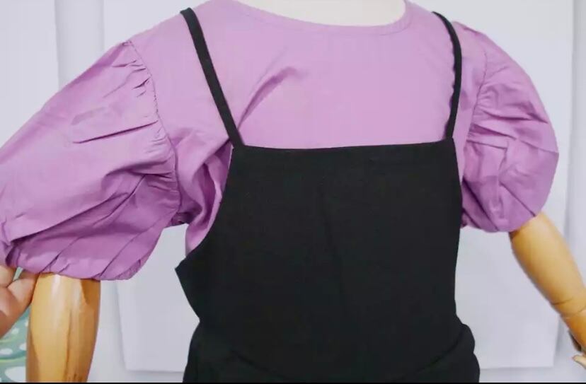 パフスリーブトップス&サロペットの2点set❤️