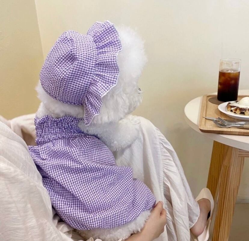 可愛いワンちゃんのチェック柄帽子付き服用❤️通気性抜群✨入荷!