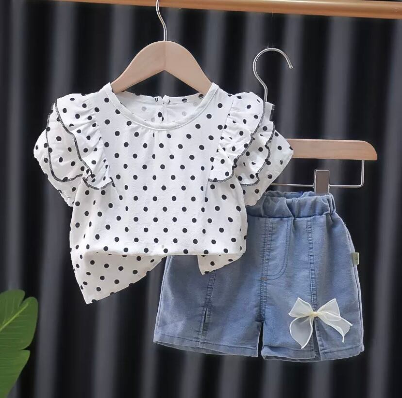水玉フリルとリボンのワンポイントが可愛いショートパンツset❤️入荷!