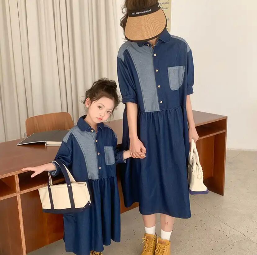 397-2.春が待ち遠しい✨パッチワークが可愛いくて母娘でお揃い❤️デニムのワンピース❤️mama入荷!