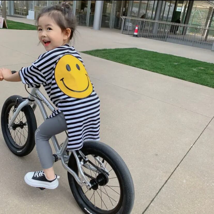 415.バックのニコちゃんが可愛い❤️スリット入りロングボーダーTシャツ✨入荷!
